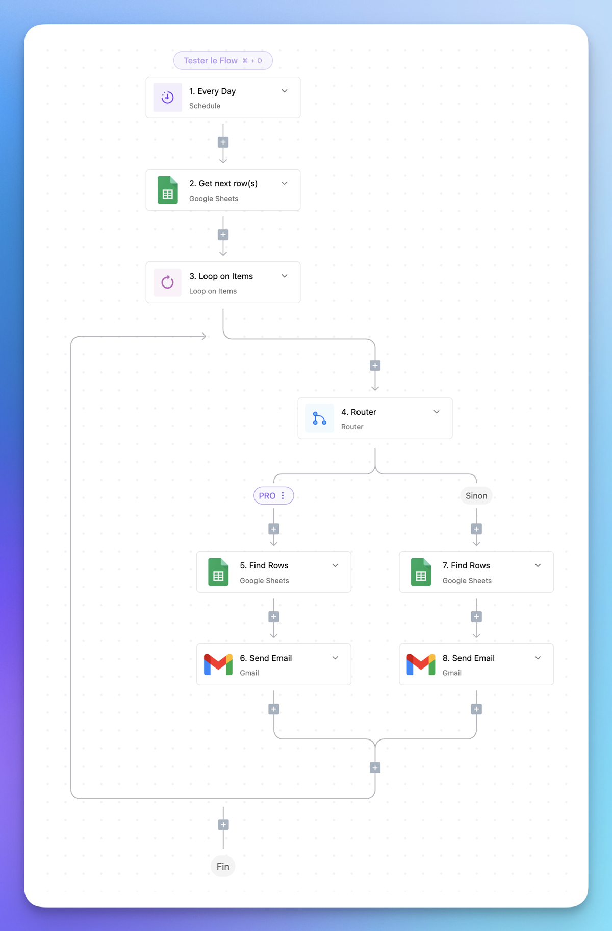 Plateforme visuelle qui mise sur la flexibilité : routes conditionnelles, cycles, filtres et connexion API. La bibliothèque compte plus de 3 000 applications pré‑construites et l'éditeur permet de construire des scénarios complexes. | Utilisateurs ayant besoin d'une grande granularité et de workflows ramifiés, tout en conservant une interface graphique. |